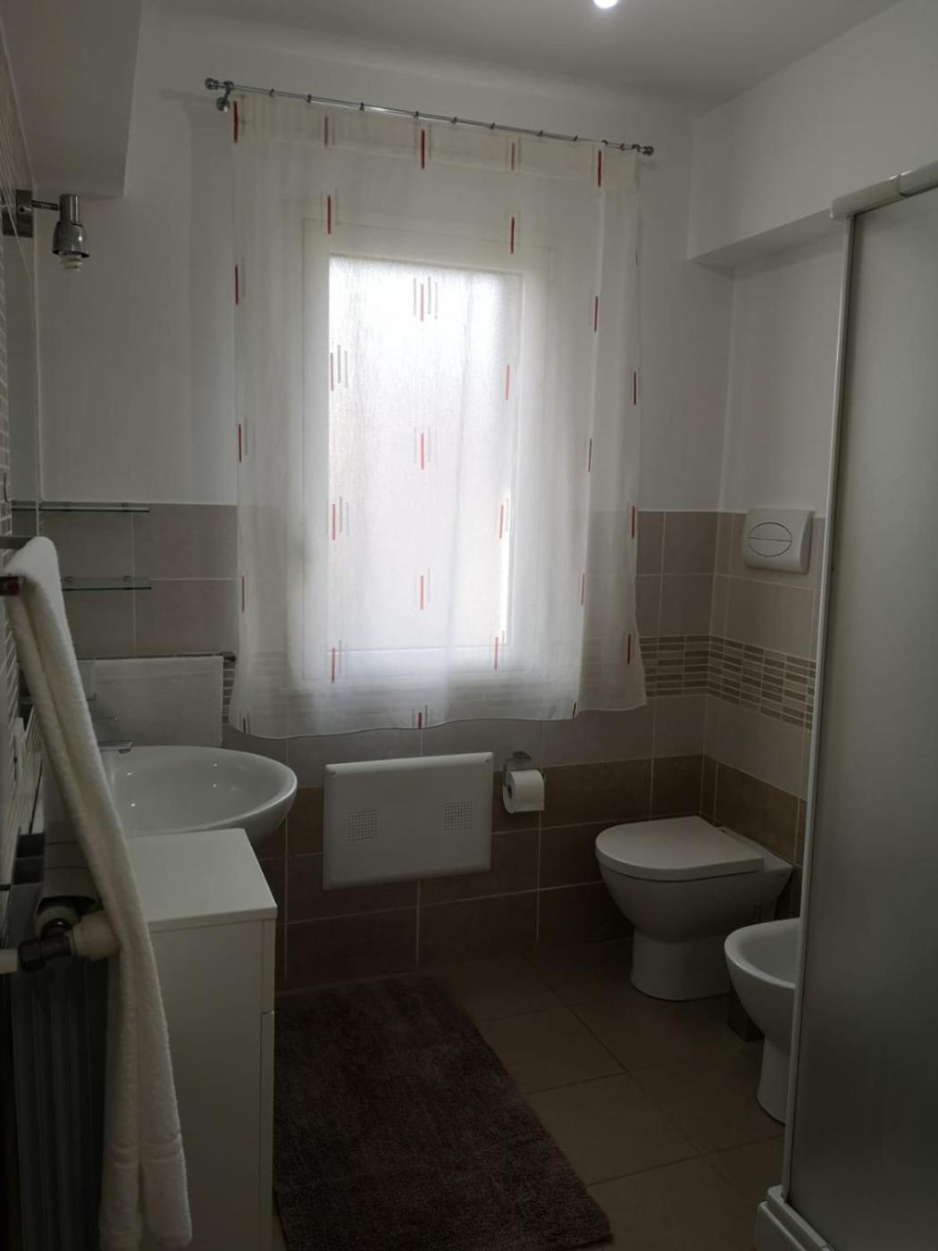 Two-Bedroom Apartment. Featuring a private entrance, this air-conditioned apartment is comprised of 1 living room, 2 separate bedrooms and 1 bathroom with a shower and a bidet. Meals can be prepared in the kitchen, which is fitted with a stovetop, a refrigerator, kitchenware and an oven. Boasting a balcony with sea views, this apartment also offers a washing machine and a flat-screen TV. The unit offers 2 beds.