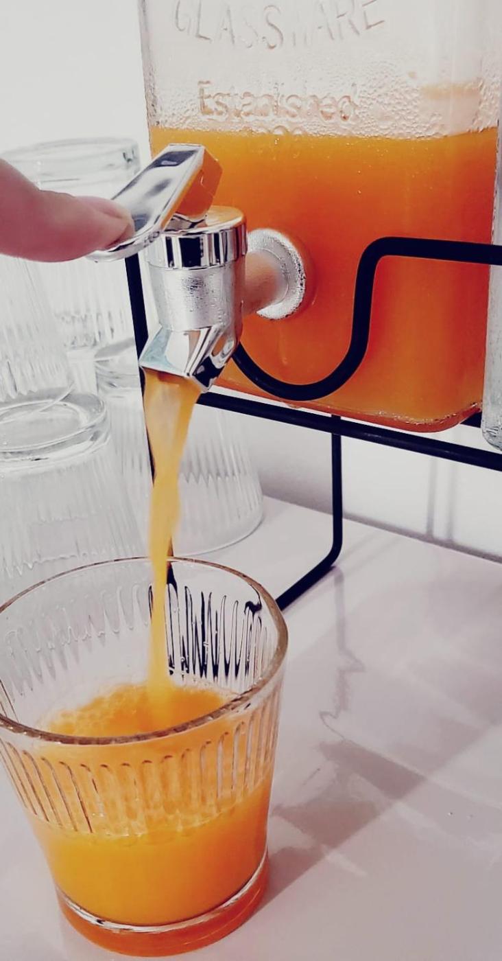 Buffet and Italian breakfast options with fresh pastries, fruits and juice are available.