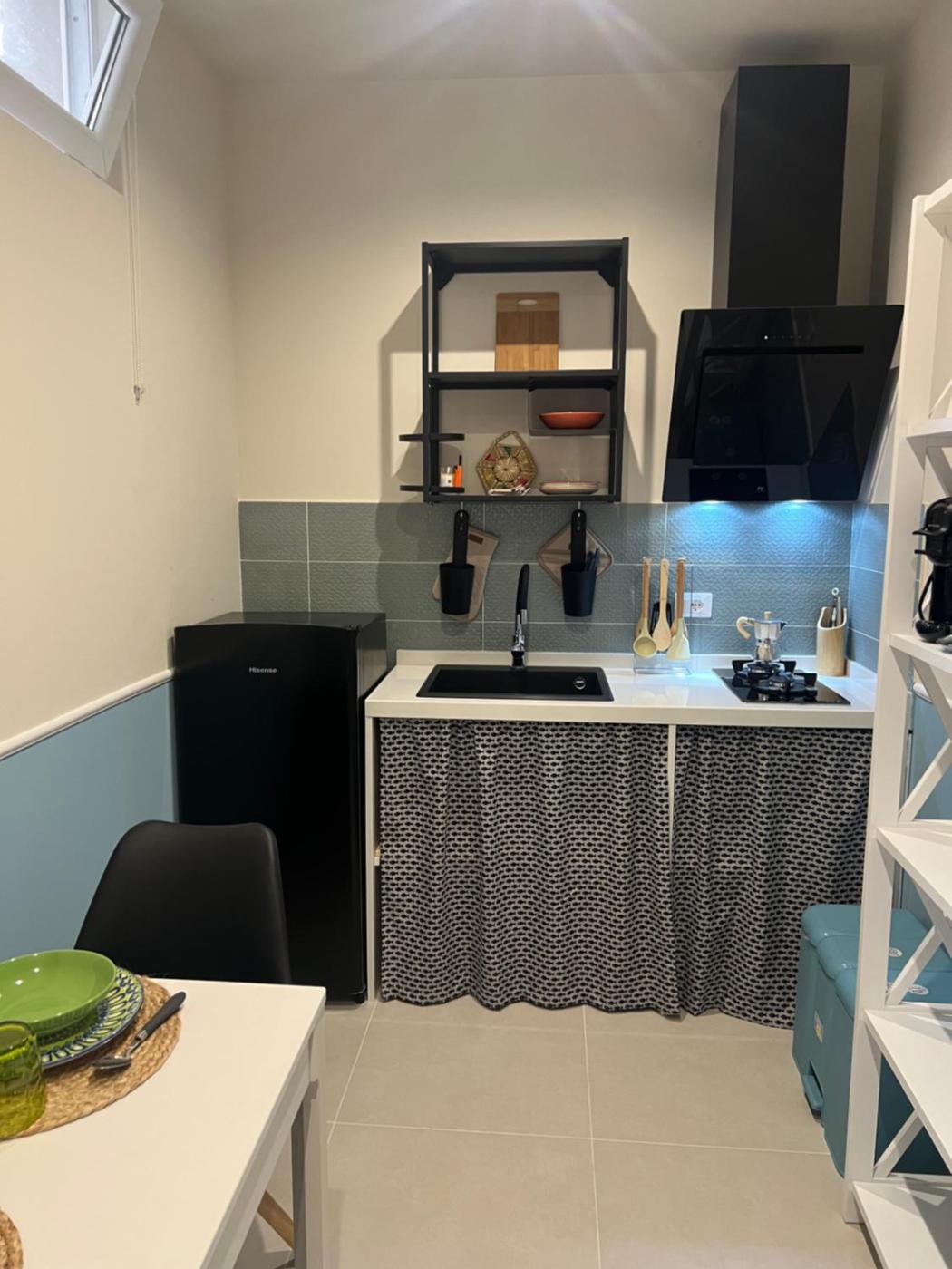 Studio Apartment. The air-conditioned apartment has 1 bedroom and 1 bathroom with a shower and a hairdryer. Guests can make meals in the kitchen that features a stovetop, a refrigerator, kitchenware and a microwave. This apartment features a washing machine, soundproof walls, a flat-screen TV and a patio. The unit has 1 bed. ;