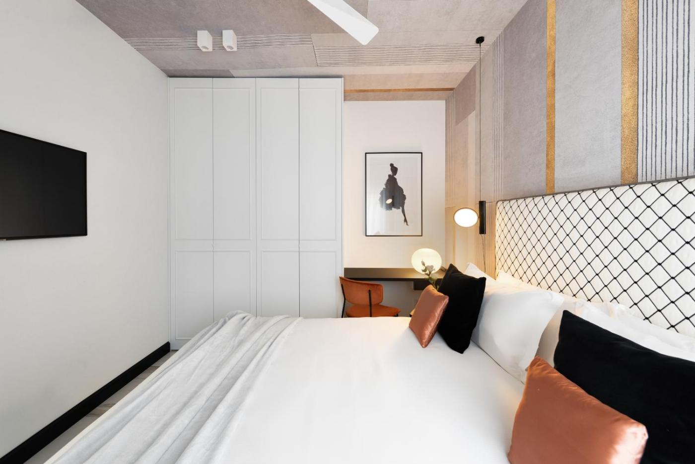 One-Bedroom Apartment. Featuring a private entrance, this air-conditioned apartment is comprised of 1 living room, 1 separate bedroom and 1 bathroom with a shower and a bidet. The apartments kitchenette is available for cooking and storing food. Boasting a terrace, this apartment also offers soundproof walls, a seating area and a flat-screen TV. The unit offers 2 beds.